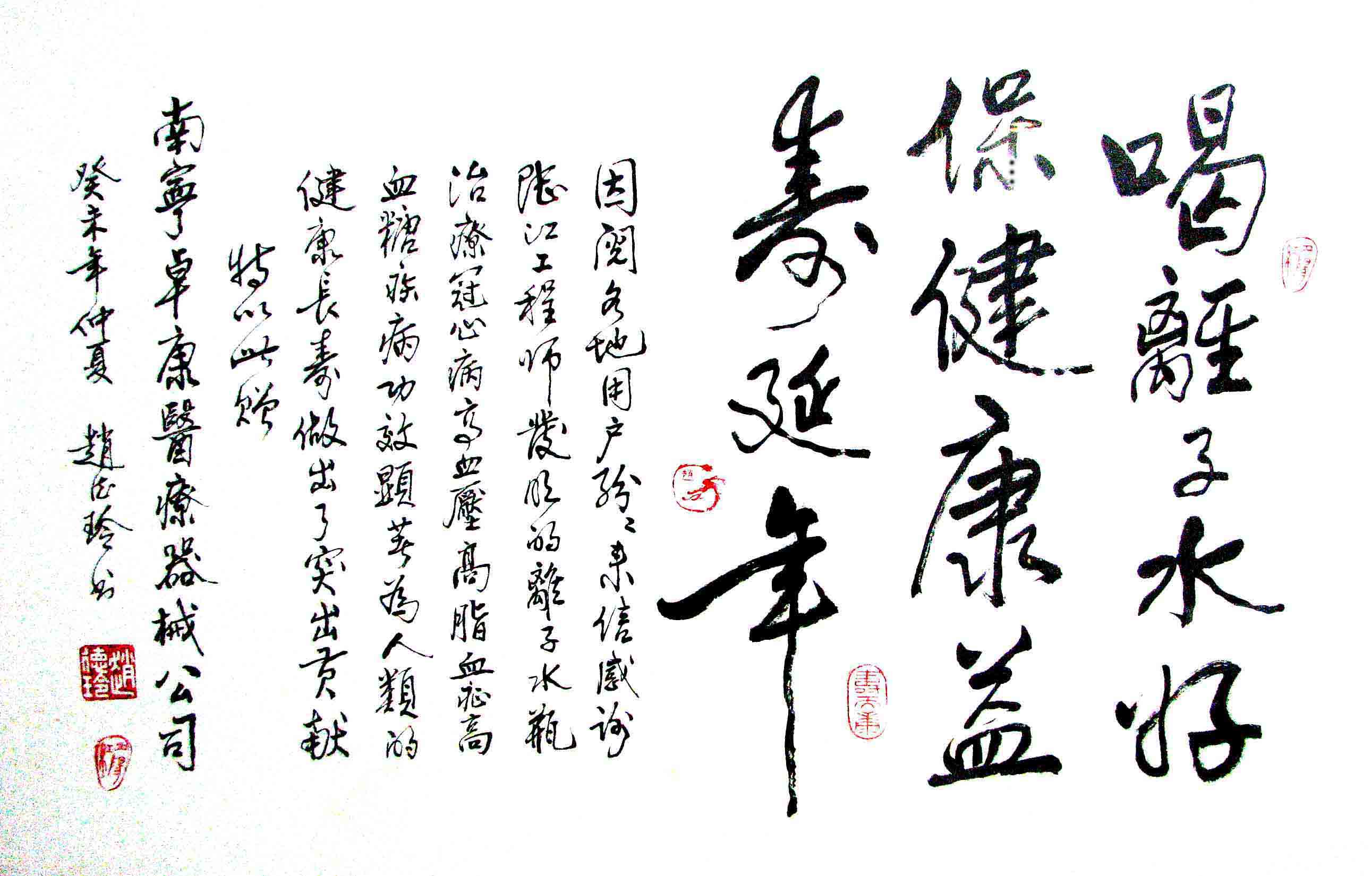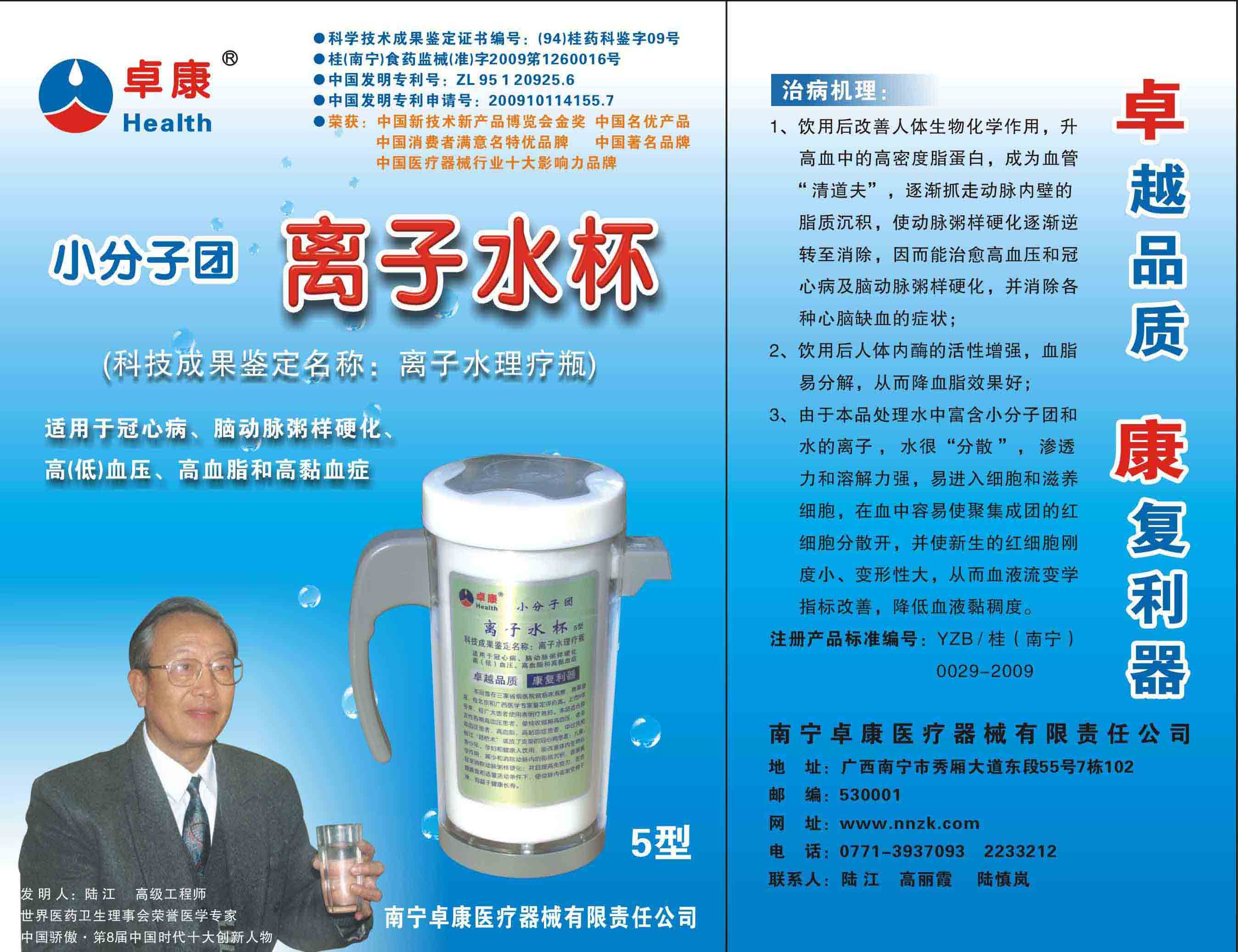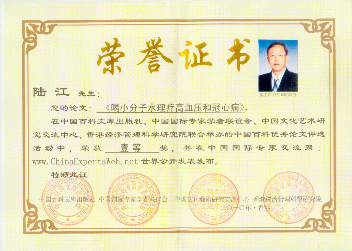 -----我是從事建筑的高工,本來沒有資格去攻克醫(yī)學(xué)難題,卻為了自身健康才扣響醫(yī)學(xué)的大門。由于我1990年患高血壓,因怕中風(fēng)才研究發(fā)明了離子水瓶,我把水處理成微小分子團水,飲用后治愈了高血壓。便于1993年底送到三家省級醫(yī)院做臨床試用4個月。經(jīng)北京和廣西醫(yī)學(xué)專家鑒定:"降脂降壓效果好"," 能擴大心腦動脈流量,改善心腦電圖以及微循環(huán)","對治療心腦動脈粥樣硬化、高血壓、高血脂有良好的醫(yī)療保健作用。""產(chǎn)品的技術(shù)性能和療效達到了同類產(chǎn)品的國內(nèi)領(lǐng)先水平,經(jīng)廣西醫(yī)學(xué)科學(xué)情報研究所檢索,未見國外有類似報道。"中國醫(yī)學(xué)科學(xué)院張正國教授從美國國立醫(yī)學(xué)圖書館數(shù)據(jù)庫存Medline檢索英俄文資料,均未見類似報告。2000年上市后,我為了對消費者負(fù)責(zé)而繼續(xù)觀察研究,一直通過《信譽卡》和《質(zhì)量跟蹤調(diào)查書》向患者承諾療效,請用戶使用6個月后反饋效果。和脂壓患者飲用2至5個月內(nèi),消除癥狀,停服藥物,血壓正常;冠心病患者飲用3~5個月逐漸減輕至消除心絞痛、房顫等癥狀,不再服藥,飲用1年左右心電圖正常,經(jīng)冠脈造影掃描無明顯狹窄,表明冠心病痊愈。大量患者還反映許多衰弱器官被修復(fù),讓前列腺增生、慢性咽喉炎、慢性氣管炎、支氣管炎、慢性胃炎、腸炎和膽囊炎等不藥而愈;2型糖尿病患者是因為胰島衰弱致病,飲用該水半年至一年,逐漸減藥至停藥,血糖尿糖正常,真正治愈2型糖尿病。中風(fēng)后遺癥患者飲用六七個月,可逐漸減輕至消除肢體和語言障礙,表明飲用該水能讓壽命很長的神經(jīng)元細(xì)胞逐漸修復(fù),奇跡般地恢復(fù)肢體和語言功能。飲用后還使胸腺和脾臟兩個重要的免疫器官被修復(fù)和增強,產(chǎn)生免疫細(xì)胞多,提高了免疫力,使人不生病或少生病。自此, 飲用微小分子團水創(chuàng)造了攻克冠心病、高(低)血壓和糖尿病三大醫(yī)學(xué)難題的奇跡。人們對此感到不可思議,但實踐是檢驗真理的唯一標(biāo)準(zhǔn)。