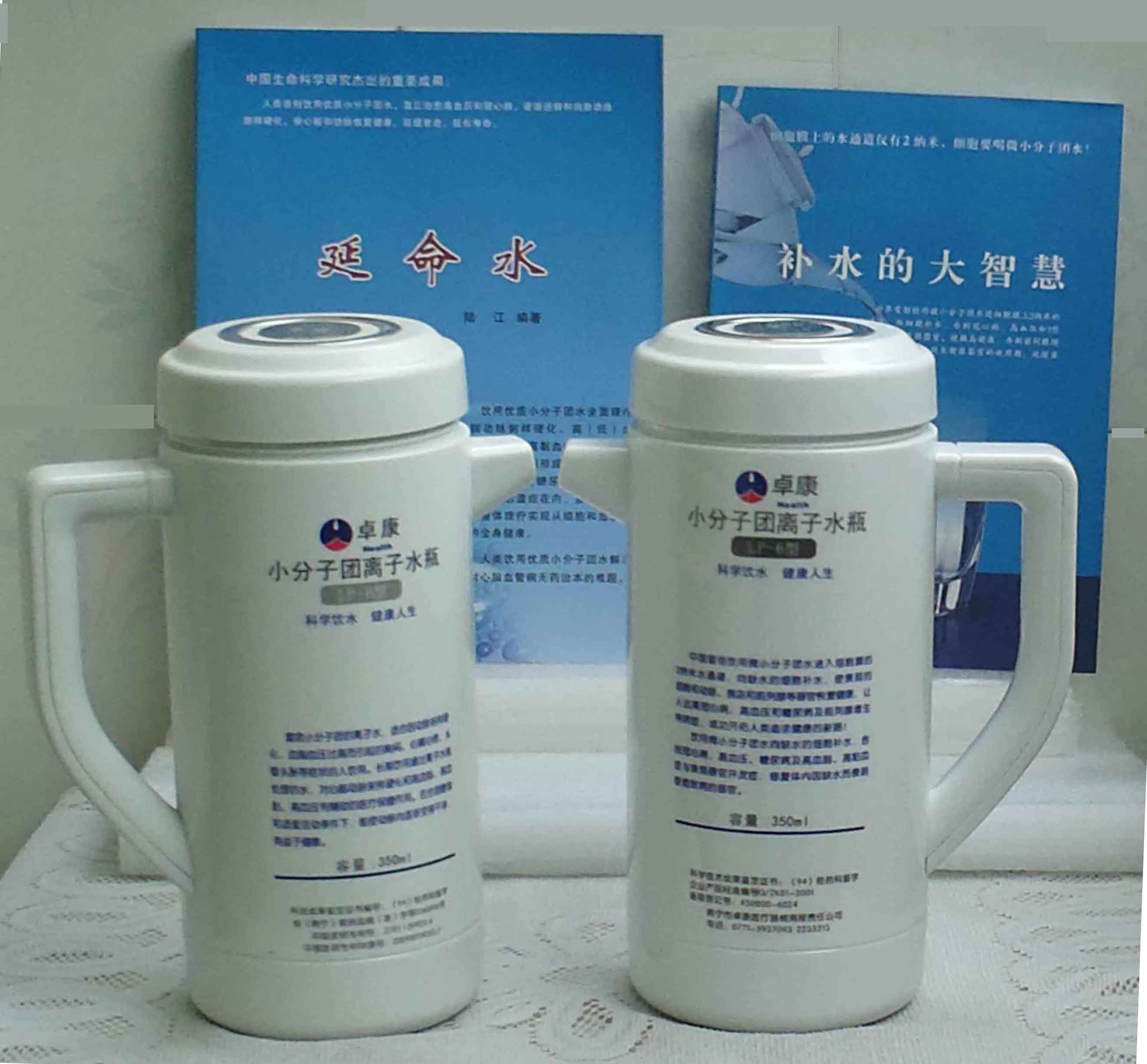 本品大量用戶的使用效果表明,能治愈冠心病、腦動脈硬化、原發(fā)性高(低)血壓、高血脂、高粘血癥、高血尿酸癥(痛風(fēng))和2型糖尿病、衰弱器官并發(fā)癥(前列腺增生、腎衰與尿毒癥)及中風(fēng)后遺癥等療效好。產(chǎn)品配信譽卡。使用壽命30年,不換芯,易清洗。團購優(yōu)惠。從郵局匯款,匯費1%,地址按本頁下方地址、聯(lián)系人寫。從銀行匯款,請點擊[聯(lián)系匯款]欄,從工商銀行匯款,建設(shè)銀行、農(nóng)業(yè)銀行匯款,均免收匯費,匯款后20--30分鐘內(nèi)發(fā)短信,可用微信轉(zhuǎn)帳,均免匯費,微信號即手機號13768308380。匯款后,告知你的姓名和地址,我公司聯(lián)系人手機號是:13768308380卓康牌離子水瓶為我公司獨家生產(chǎn),郵購產(chǎn)品配《補水的大智慧》彩印書一本,另配四季出版社出版的新書《補水的大智慧》一本,并配光盤一張(含央視主持人釆訪陸江的對話視頻)。目前市場和"淘寶網(wǎng)"上有人兜售假冒的偽品,望讀者審察辯別真?zhèn)危旒僬哓飧`假冒本公司的各種認(rèn)證、獲獎獎項、專利號和外包裝盒上的中英文字,包括科技成果的鑒定意見等,請讀者注意防偽。如何識別假貨?已經(jīng)買了假貨怎么辦?(請點擊[打假掠影][打假掠影])。